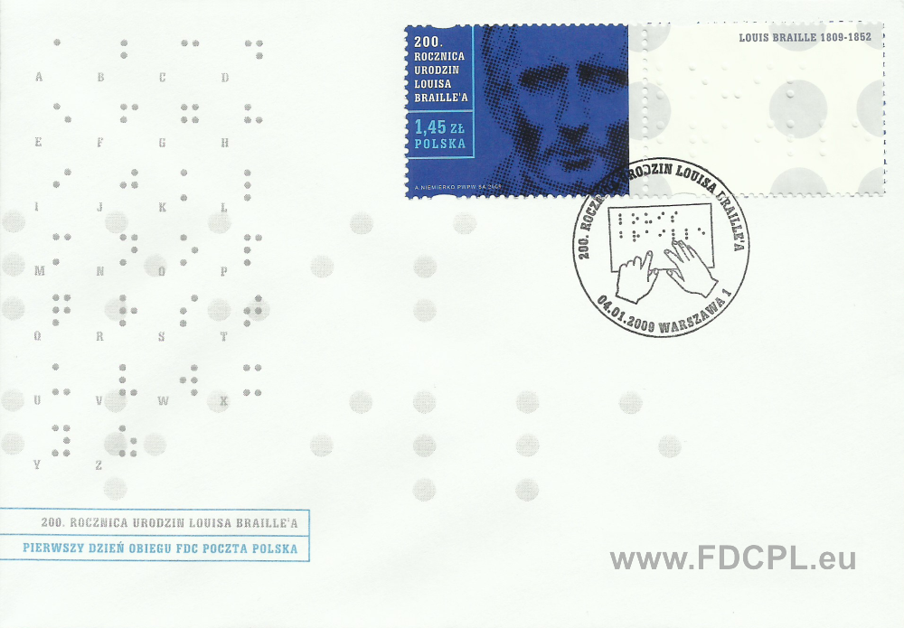 ![]() | [S-1452] 200. rocznica urodzin Louisa Braille'a (Fi. 4257 [Pw]) |